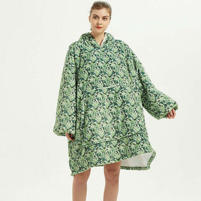 Stay cozy and comfortable with our oversized fleece hoodie blanket. Perfect for lounging around the house, this blanket combines the warmth of fleece with the convenience of a hoodie. The oversized design allows for full coverage and the soft fabric is sure to keep you warm.